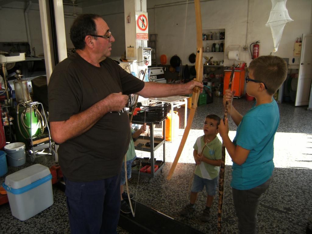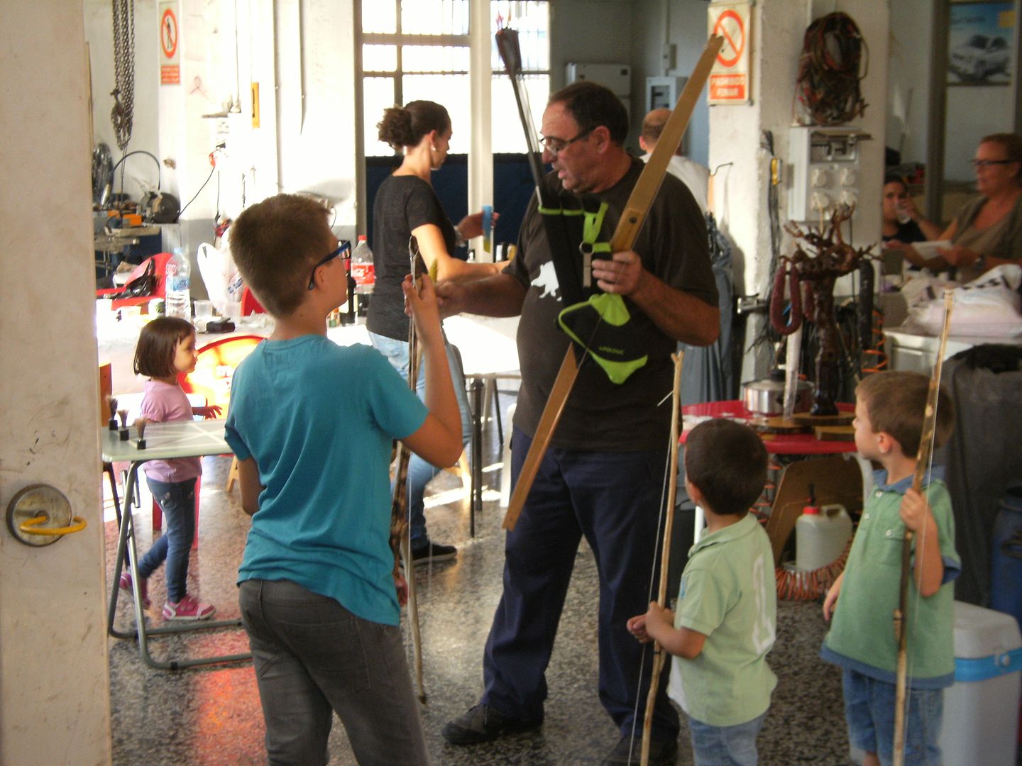 Tras un ratito de animada tertulia y unas copas y dulces,el cocinero dejo los fogones y abrio su arsenal arquero.Aqui le tenemos ejerciendo de profesor de tiro con los mas pequeños.